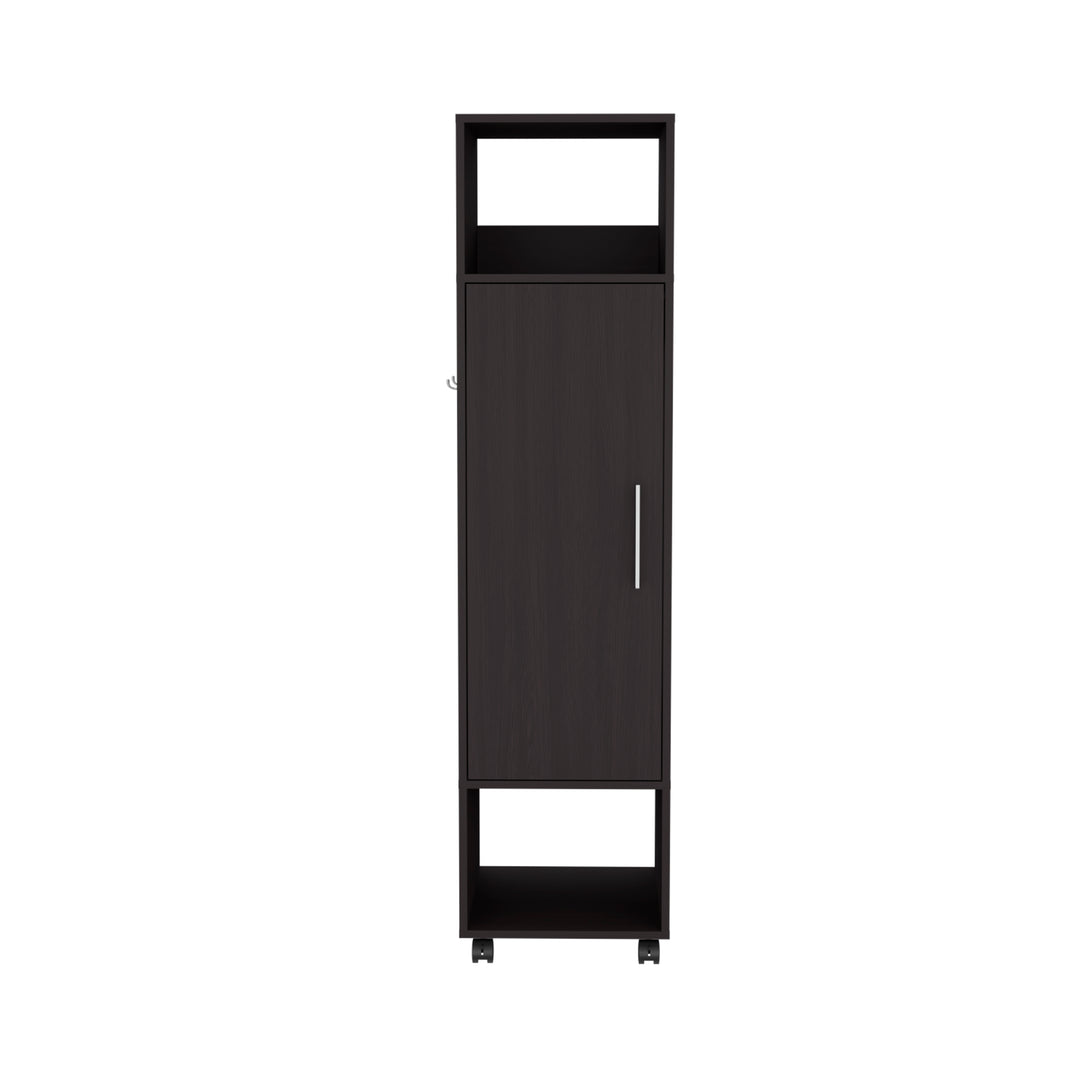 Armario Kronospan en melamina con una puerta , dos estante , barra para colgar ropa y espejo incluido , Negro 160 X 40 X 48 cm