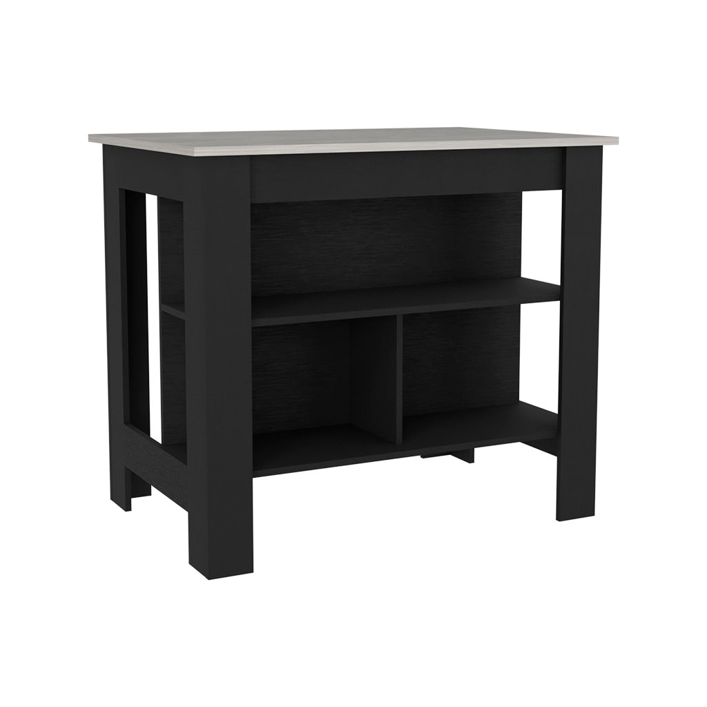 Isla de cocina Cala en melamina con tres estantes y cuatro patas
