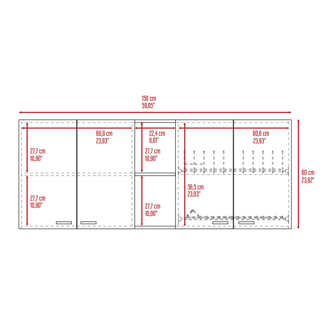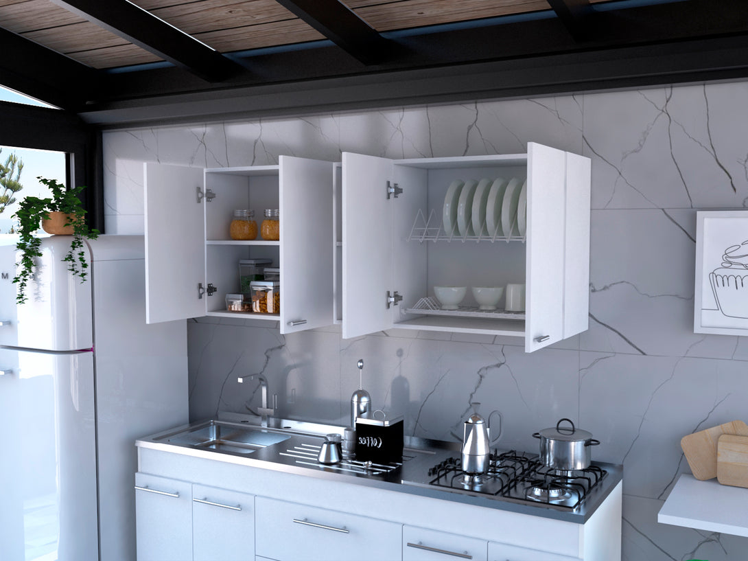 Mueble de Pared Cocina Portofino 150, Amplio y Práctico, con Puertas y Estantes para Platos, Blanco